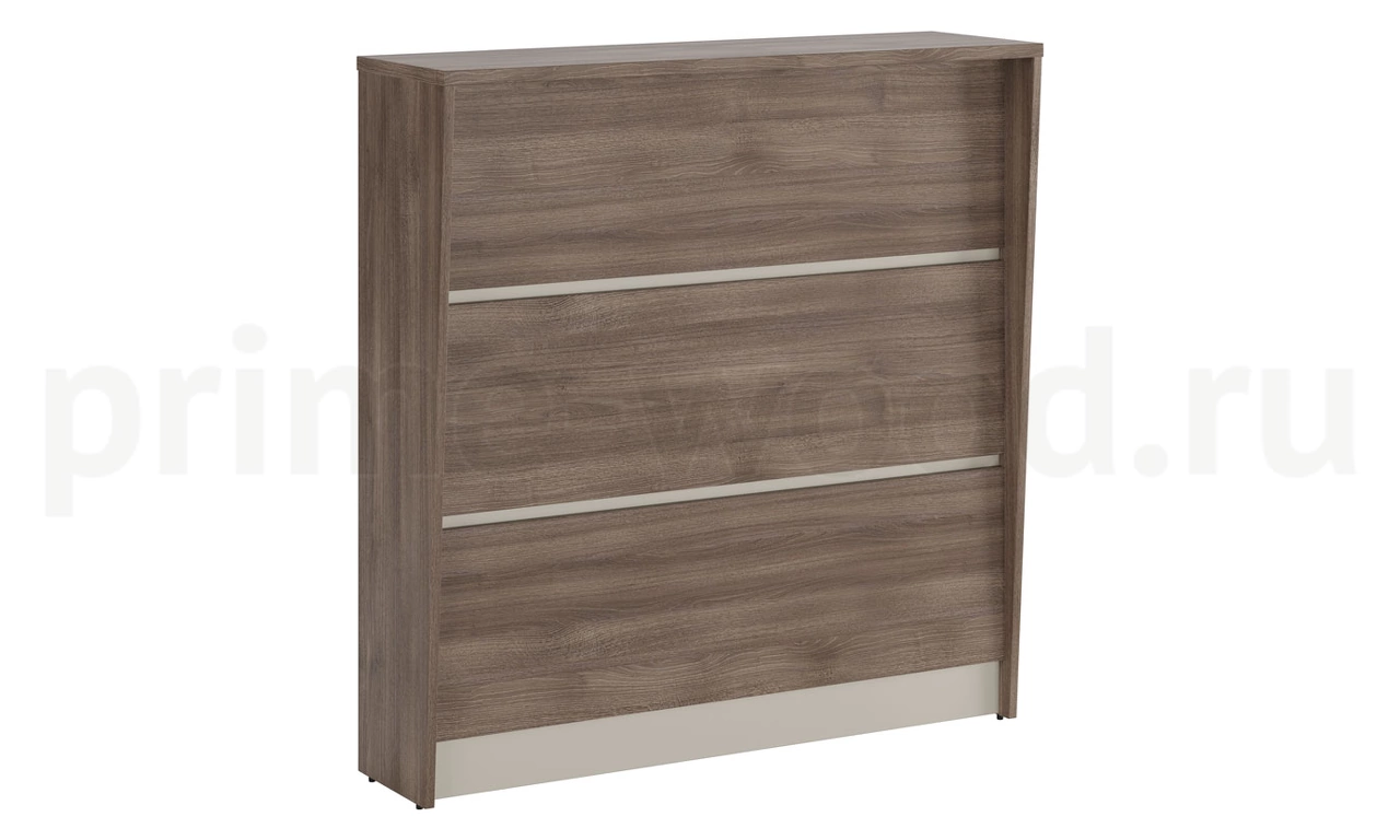 В цвете Дуб Шамони составной: боковины, топ и столешница выполнены в цвете Дуб Шамони темный, а передняя панель - Дуб Шамони светлый.